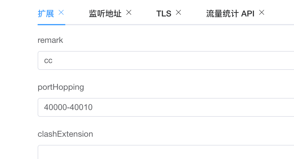 - 进入Hysteria 管理,添加或修改配置,参数如下: